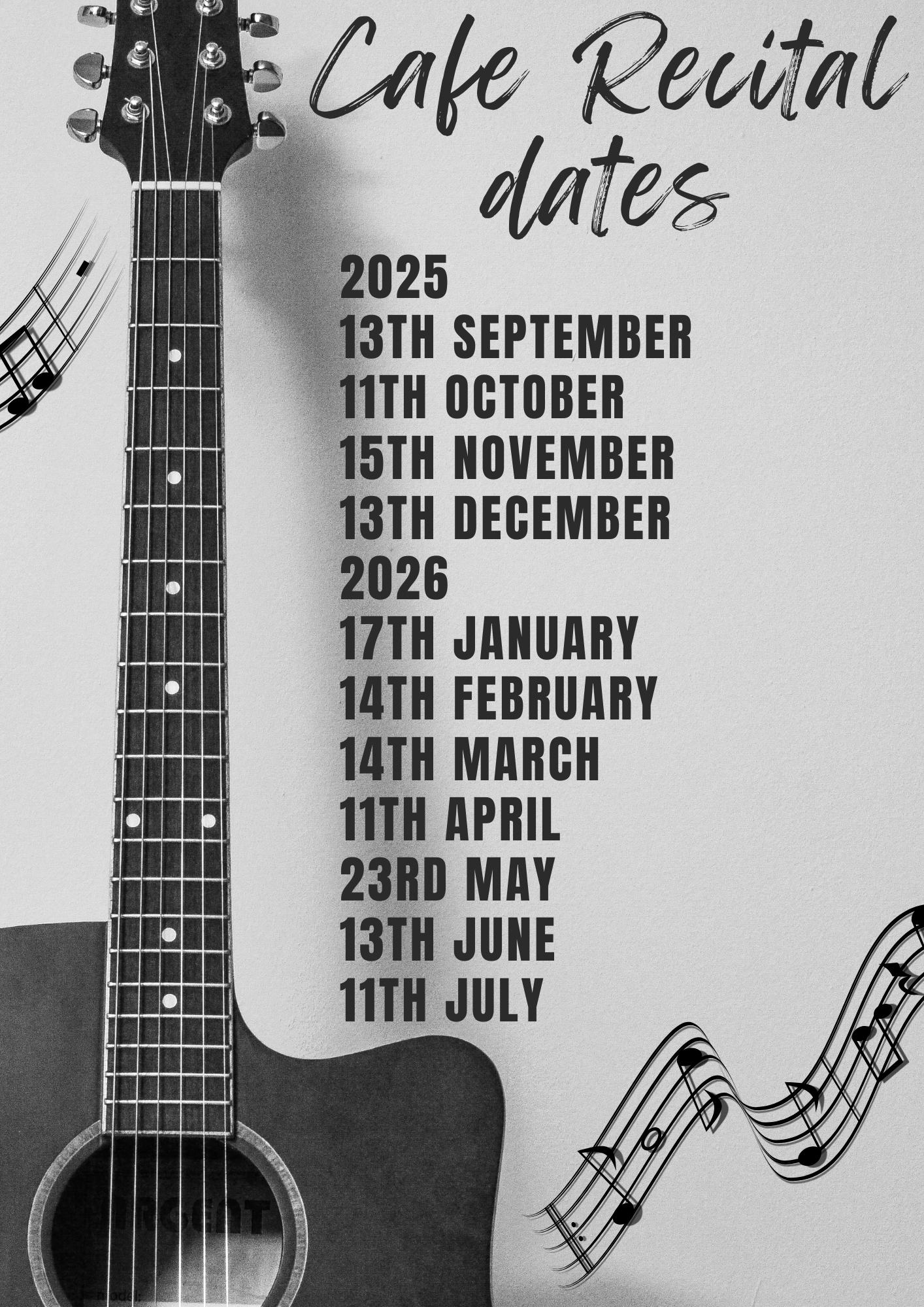 All are welcome to our monthly cafe recitals! Each month we have a new performer. We begin at 10:30am for tea, coffee, cake and friendship with the recital starting at 11am. See poster for all the up coming dates. More detail about each upcoming recital ca...
